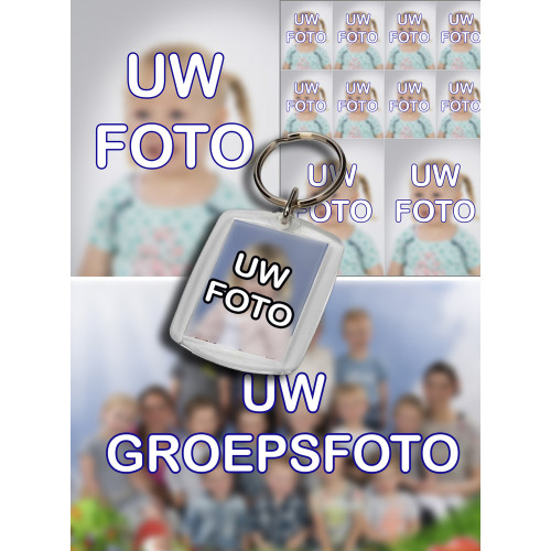 1x dubbelzijdige sleutelhanger met 2 pasfoto's uit de set.